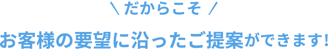 臨機応変に調整が可能なため、お客様に最短でお引き渡しが可能です。